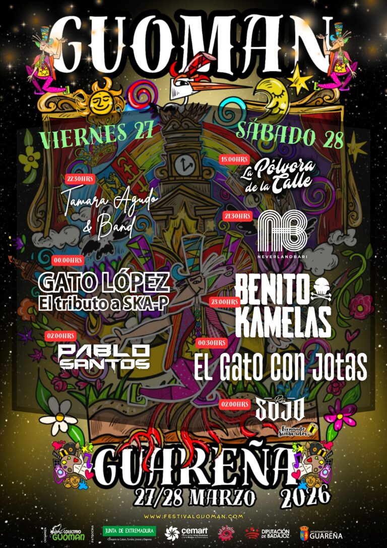 Tamara Agudo Band, El Gato López, La Pólvora De La Calle, Neverland Bari, Benito Kamelas, El Gato con Jotas y los djs Pablo Santos y Pedro Sojo, conforman el cartel de conciertos del Guoman 2026 de Guareña